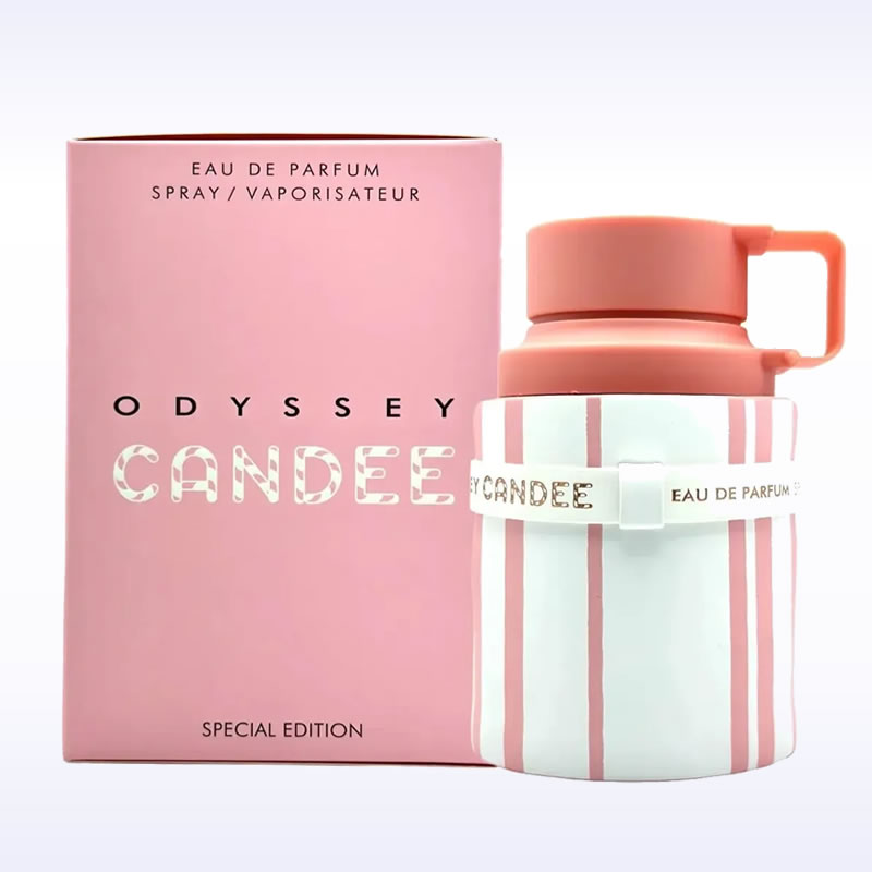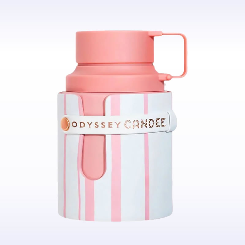 Desde la primera aplicación, Odyssey Candee sorprende con un estallido frutal de fresa, frambuesa, durazno y bergamota, que se mezclan con la frescura del geranio para crear un inicio chispeante y lleno de vida. Su corazón revela la parte más deliciosa y femenina con notas de caramelo, jazmín y fruta de la pasión, un acorde dulce y floral que evoca ternura, sensualidad y sofisticación a la vez. Finalmente, la fragancia se asienta en un fondo cálido y envolvente de ámbar, pachulí y almizcle, que deja una estela elegante, duradera e inolvidable.